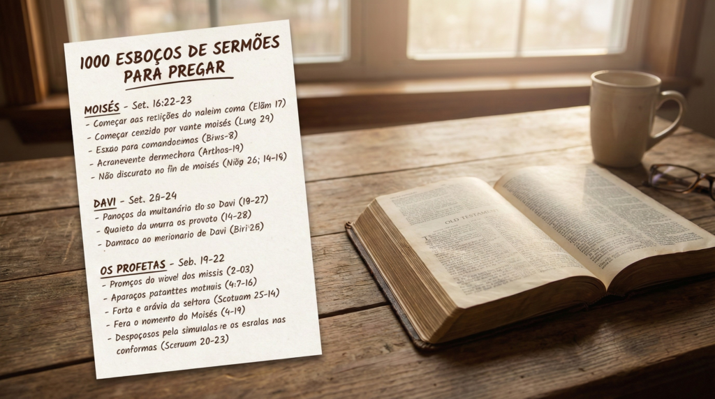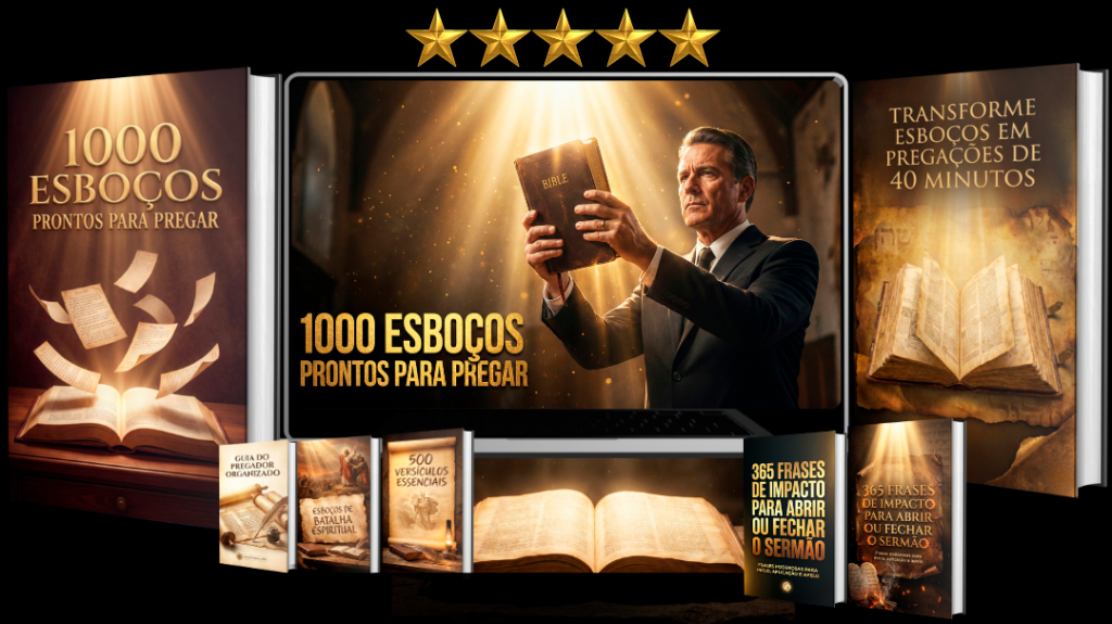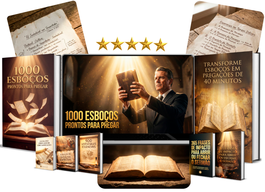 “90% dos nossos clientes que enfrentavam dificuldades para preparar sermões passaram a pregar com mais clareza, autoridade e inspiração em poucos dias após utilizar os 1000 Esboços Prontos Para Pregar.”
