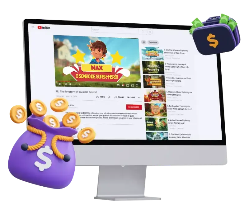 Aproveite essa oportunidade única para lucrar usando nossos Vídeos prontos de Histórias infantis ou criando vídeos novos! Conquiste seu espaço nas maiores plataformas do mundo como Youtube e TikTok, ou Venda para Pais e Mães com crianças de 2 a 10 anos.