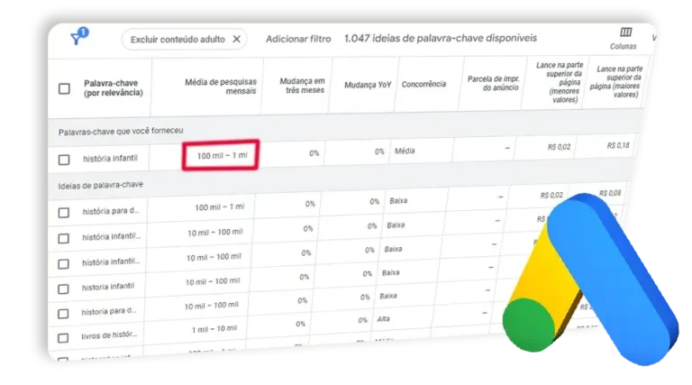 É grande o número de buscas mensais com PALAVRAS CHAVES ranqueadas
